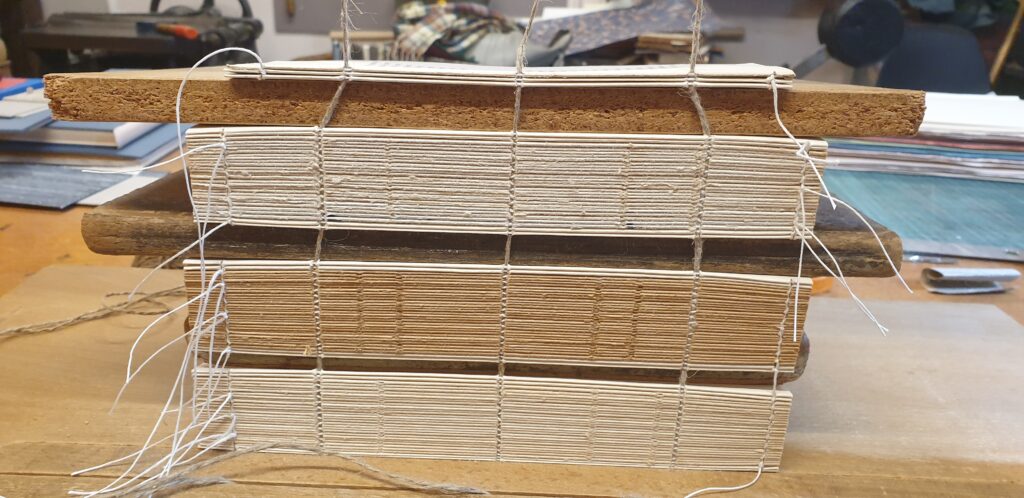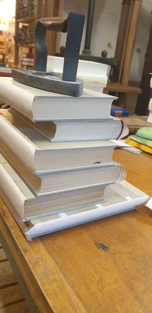 Meine französische Meisterin führte mich einmal komplett durch die Herstellung meines eigenen Franzbandes, ein Buch mit einem aufwändig gearbeiteten Ledereinband nach französischer Art. Was bei uns eine Sonderarbeit und Rarität ist war im Atelier des Bernardins das tägliche Geschäft. Dies gab mir einen ausführlichen Überblick über den Ablauf und die französischen Fachbegriffe und ich konnte die Fertigkeiten meiner Ausbildung vertiefen und intensiv üben.