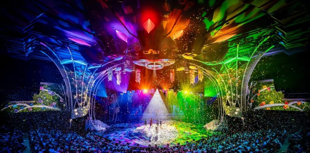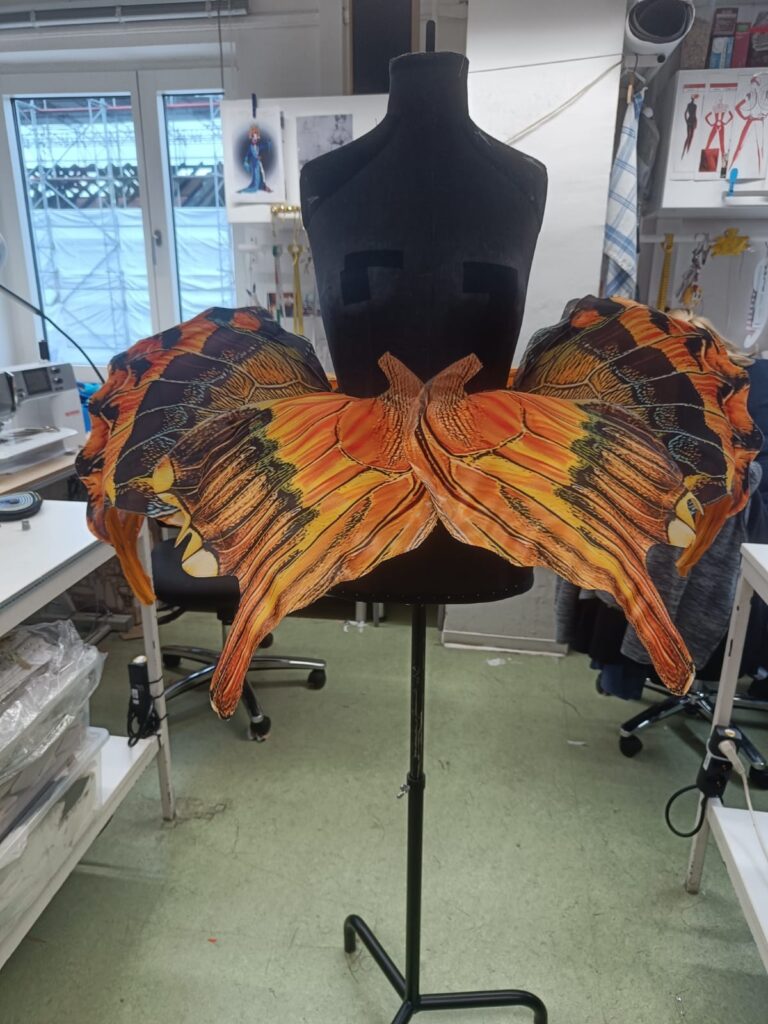 Im Rahmen meiner Ausbildung zur Damenmaßschneiderin am Theater hatte ich die Gelegenheit, drei Wochen Praktikum im Friedrichstadt-Palast in Berlin zu verbringen. Während meines Praktikums war ich an der Kids-Show „Frida & Frida“ beteiligt, die sich noch in der Entwicklung befand. Während meiner Zeit im Palast durfte ich auch die aktuelle Grand Show sehen, die sehr beeindruckend war. Nicht nur die riesige Bühne – die mit fast 3.000 m² die größte Theaterbühne der Welt ist –, sondern auch die Special Effects, wie Latex-Ballon-Kostüme, unzählige Swarovski-Steine, Dufteffekte und regnende Blumen, haben mich sehr fasziniert. Es war zu spüren, dass für diese eine Show ein Jahr lang alles gegeben wurde und auch sehr viel Geld darin steckt. So wurde das Kostüm- und Bühnenbild von Jean Paul Gaultier und weiteren renommierten Designer:innen wie Fecal Matter gestaltet, was auch an den ausgefallenen Kostümen und der Verwendung ungewöhnlicher Materialien zu erkennen war.