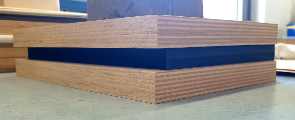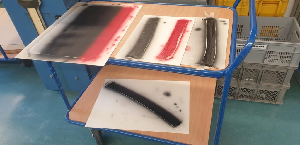 Wegen den Mate­ri­al­ei­gen­schaf­ten der Roh­bö­gen habe ich mich außer­dem dazu ent­schie­den, einen kom­plet­ten Farb­schnitt anzu­brin­gen, was eben­falls dem Stand des zwei­ten Lehr­jah­res gerecht wird.