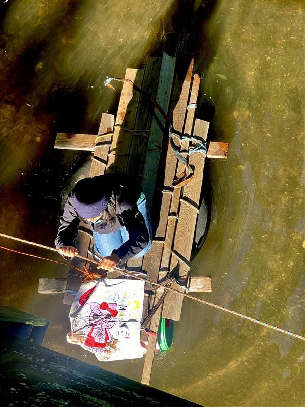 Zunächst wur­den Kon­struk­ti­ons­zeich­nun­gen ange­fer­tigt, ver­schie­de­ne Ideen dis­ku­tiert, unter­schied­li­che Mög­lich­kei­ten aus­pro­biert, bis sich alle auf eine bestimm­te Bau­wei­se eini­gen und die­se in die Tat umset­zen konn­ten. Mit viel Krea­ti­vi­tät, Zusam­men­ar­beit, Durch­hal­te­ver­mö­gen und gegen­sei­ti­ger Unter­stüt­zung bau­ten die Klas­sen so ein Floß, das an einem Seil zu Was­ser gelas­sen wur­de und eine Per­son tra­gen konn­te. Außer­dem ent­wi­ckel­te jeweils eine klei­ne Grup­pe eine Klas­sen-Flag­ge, die sie mit viel Lie­be und Sorg­falt auf ein Stück Stoff zeich­ne­te, wel­ches anschlie­ßend am Floß befes­tigt die Über­fahr­ten begleitete.