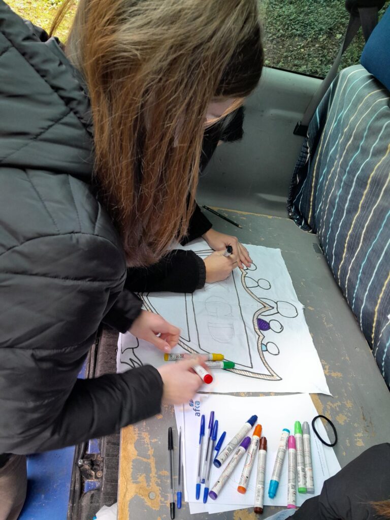 Am 1. und 2.10.2025 tra­fen sich die Klas­sen nicht wie gewohnt im war­men Klas­sen­zim­mer, son­dern auf dem Park­platz der Schre­ber­gar­ten­sied­lung an der Alb bei erfri­schen­den 9 Grad im Morgennebel.