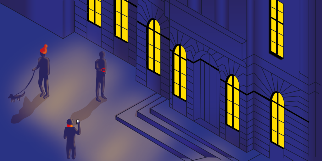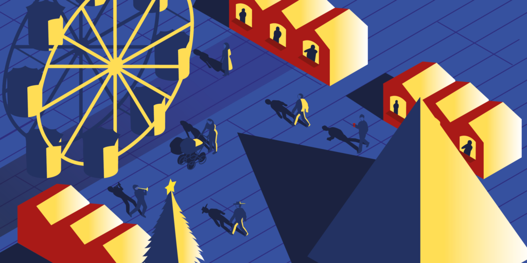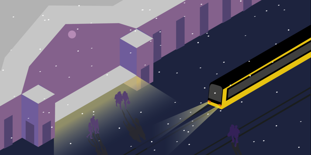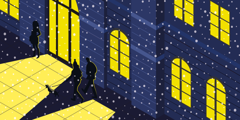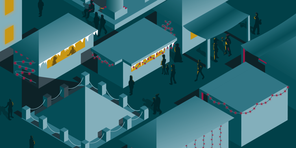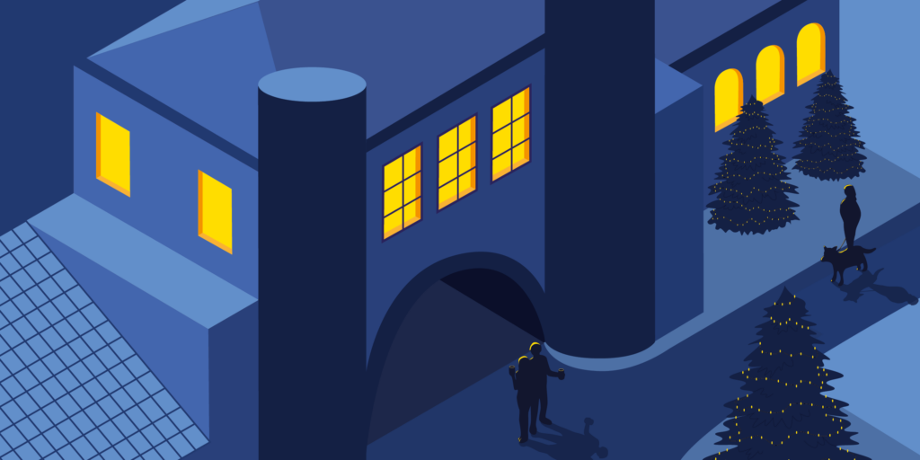 Grundlage des Entwurfs war ein isometrisches Raster, mit dem die Lernenden ikonische Orte der Stadt in einer winterlichen Nachtstimmung darstellten. Mit viel Kreativität, technischem Können und einem sicheren Gespür für visuelle Stimmung entstanden Motive, die sowohl urbanes Leben als auch winterliche Ruhe ausdrücken.